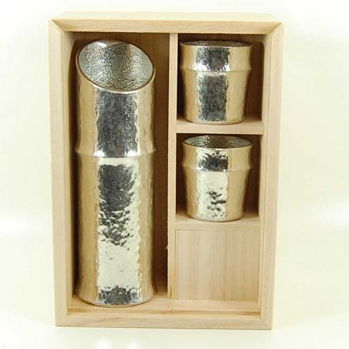 縁起の良い竹をモチーフにした酒器セットです。錫(100%)の素材にこだわり、一品一品が職人の手による槌目仕上になっています。